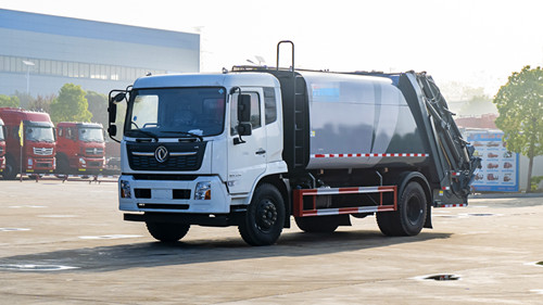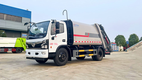 东风多利卡压缩式垃圾车改装容积10~12m3,选用3950和4500两种轴距底盘,箱体采用边4底5、Q235碳钢板,带有前推板和刮板,带有污水箱。双向压缩,标配带挂桶反转机构,可选其他样式后翻转。