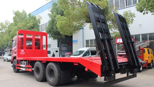 改装部分可以根据用户需要选择材料。标配横梁采用120*120方钢,底板采用8mm厚花纹板,可以选择加厚材料,可拉25吨挖机。