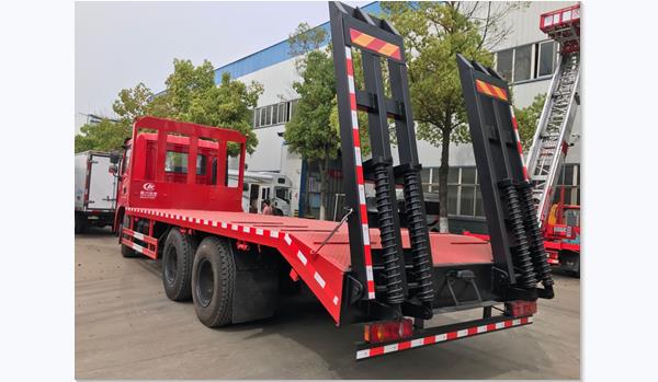 改装部分可以根据用户需要选择材料。标配横梁采用120*120方钢,底板采用8mm厚花纹板,可以选择加厚材料,可拉25吨挖机。
