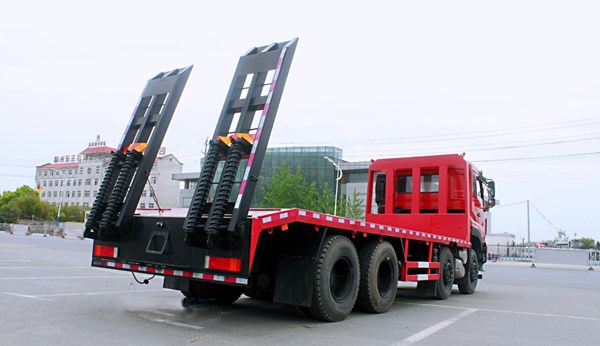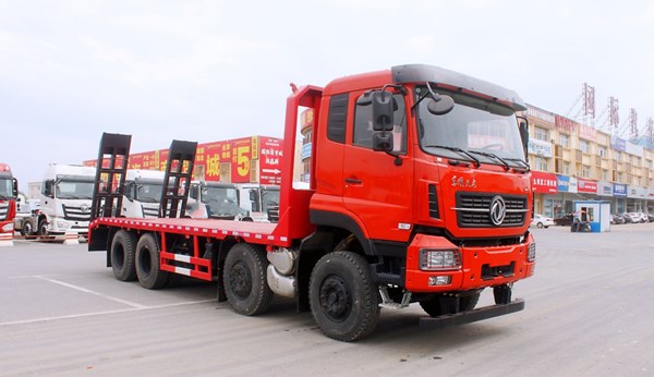 主要配置:雷诺430马力国六,东风龙擎14档变速箱带高低档,东风天龙新款KC驾驶室,16吨轮边减速桥,1100R20钢丝胎,轴距:2050+3200+1350,气囊座椅,中控锁,电动门窗,遥控钥匙,原厂空调,尺寸:10250/11250 *2550*3350。总质量31吨,额定15.39/16.795吨,整备14.075/15.48吨,上装工艺: 横梁规格为120*120方管,板面为8个厚花纹板,尾部带双弹簧双爬梯,尾部带标准支腿,可拉30吨挖机。可选装单缸单节、单缸双节液压折叠爬梯。